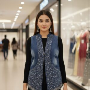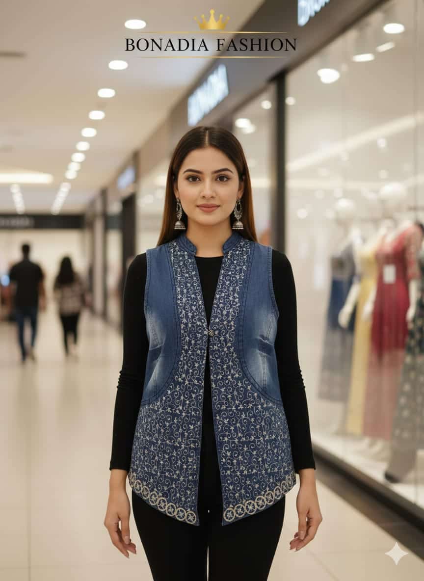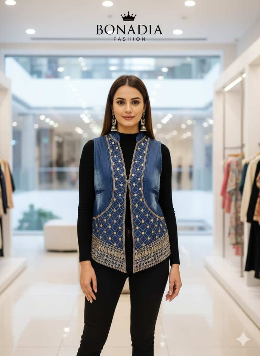 Whether you’re leading a meeting or attending a formal event, the structured silhouette and refined details of our Professional Denium Jacket will elevate your style, leaving an indelible mark of professionalism and grace.